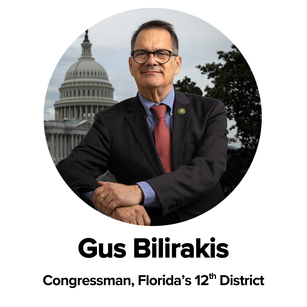 Gus Bilirakis is a proven leader serving Florida’s 12th District with a track record of real impact. Since 2006, he has championed veterans, strengthened healthcare access, and fought for families with a steady, solutions-focused approach. Known for bringing people together and getting things done, Gus leads with clarity, conviction, and a deep commitment to serving others. He lives in Florida with his wife Eva, and they have three sons.